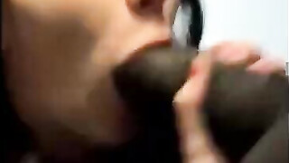 Super hottie brunette sucking a tremendous black dick and swallowing his sperm - real homemade amateur cuckold screw video.