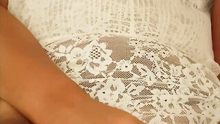 Aroused spouse fingering her nipples before sexual intercourse - real homemade middle-aged porn video.
